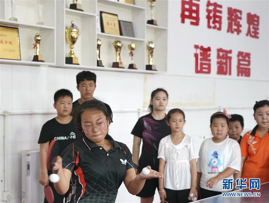 7月29日,迁安市彭店子乡八家寨完全小学乒乓球训练队队员周思宇(前左)在训练中。 近日,河北省迁安市彭店子乡八家寨完全小学乒乓球训练队利用暑假开展训练,乒乓少年们挥拍又挥汗,锻炼身体,享受假期。 新华社记者杨世尧摄