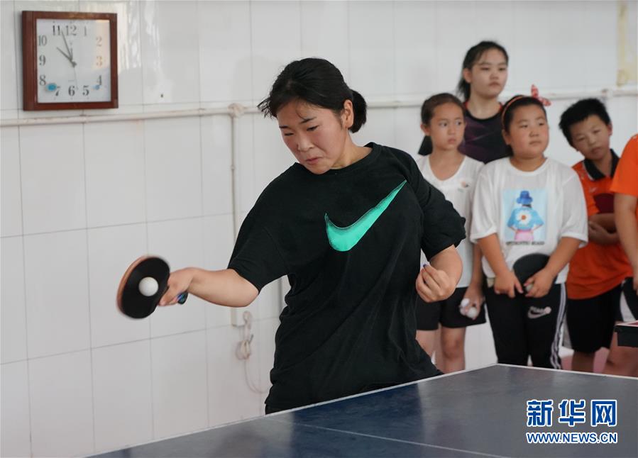 7月29日,迁安市彭店子乡八家寨完全小学乒乓球训练队队员李雯静(前左)在训练中。 近日,河北省迁安市彭店子乡八家寨完全小学乒乓球训练队利用暑假开展训练,乒乓少年们挥拍又挥汗,锻炼身体,享受假期。 新华社记者杨世尧摄