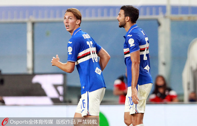 桑普多利亚(5-3-2):30-法尔科内/24-贝雷申斯基、34-吉田麻也、15-科利、3-奥杰洛、12-德保利(45’26-莱里)/7-利内蒂(73’16-阿希尔森)、4-罗纳尔多-维埃拉、14-扬克托/11-加斯顿-拉米雷斯(45’20-马罗尼)、27-夸利亚雷拉(73’23-加比亚迪尼)。