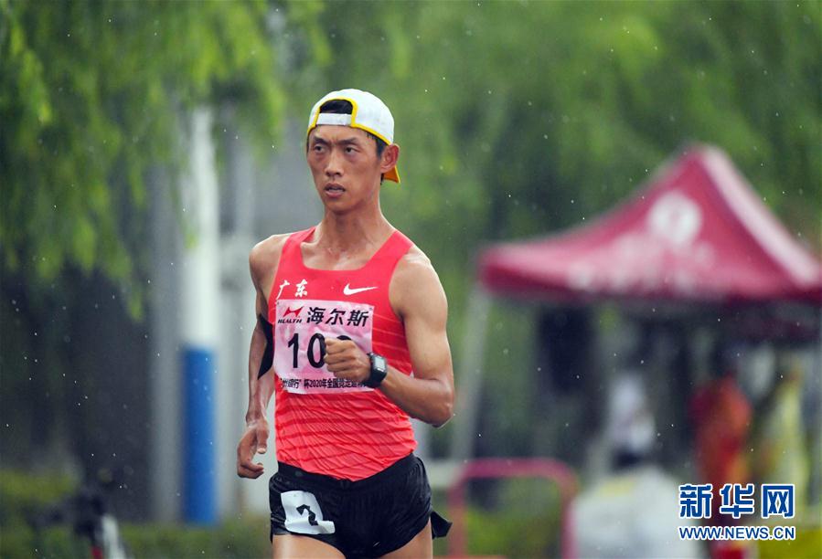 7月29日,广东队选手王凯华在男子20公里竞走比赛中。 当日,2020年全国竞走邀请赛在辽宁省锦州市举行。本次比赛是疫情防控常态化条件下,国内举行的首批全国性赛事之一,同时也是田径项目复赛的“首秀”。比赛分为男子20公里竞走、男子35公里竞走和女子20公里竞走三个项目。在上午的比赛中,广东队选手王凯华以1小时19分46秒获得男子20公里竞走冠军,山东队选手孙松以2小时34分28秒获得男子35公里竞走冠军。 新华社记者 杨青 摄
