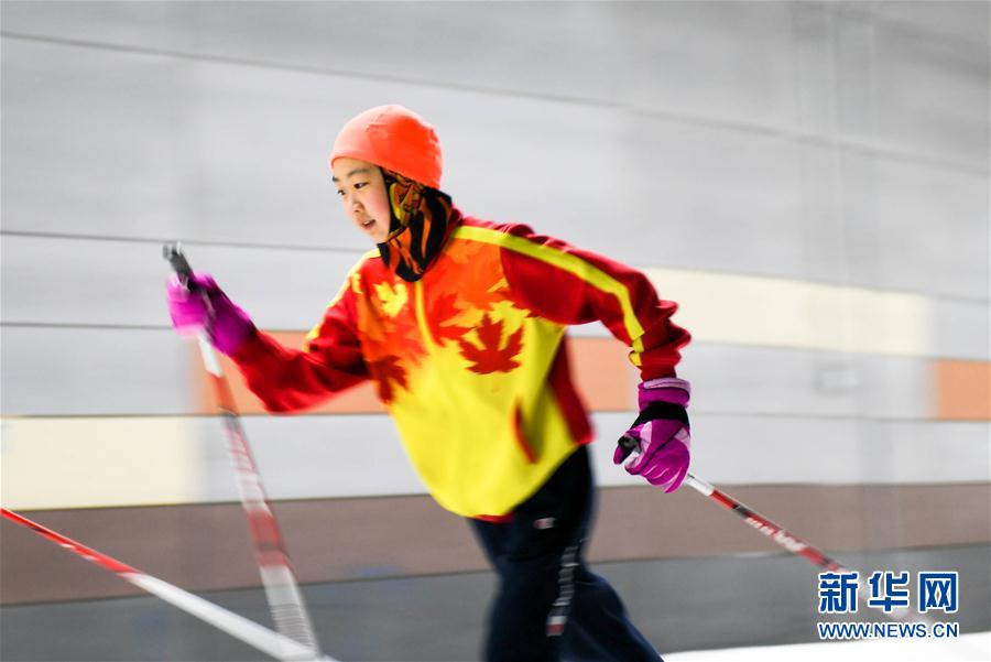 三伏天里,一群穿着滑雪服的孩子,走到一扇金属门前,摁下绿色按钮,门缓缓打开,一座超级大“冰箱”映入眼帘,孩子们鱼贯而入,顺坡滑远……这里就是吉林北山四季越野滑雪场,是亚洲首座具有国际水平的全天候标准化滑雪专业训练场地,它有效缓解了运动员在越野滑雪、冬季两项等运动项目训练的季节性限制,这里不仅是专业运动员的训练基地,也面向社会开放。 这群10至12岁的孩子们,他们来自吉林市多所小学,是吉林市越野滑雪青少年兴趣班成员。在炎热的暑假,他们不仅在室外的坡地上练习越野滑雪滑轮项目,每次还要在零下6摄氏度到零下10摄氏度的环境里练习越野滑雪2个多小时。 与高山滑雪不同,越野滑雪一圈一圈地循环往复,孩子们在滑雪场里训练非常辛苦,虽然经常跌倒,却从不喊累。 “我觉得我们现在特别幸福,夏天也可以滑雪,所以再辛苦也要坚持住。”越野滑雪青少年兴趣班成员明亦诺说。 吉林市越野滑雪青少年兴趣班成员王梓桐在吉林北山四季越野滑雪场里练习越野滑雪(7月27日摄)。 新华社发(颜麟蕴摄)