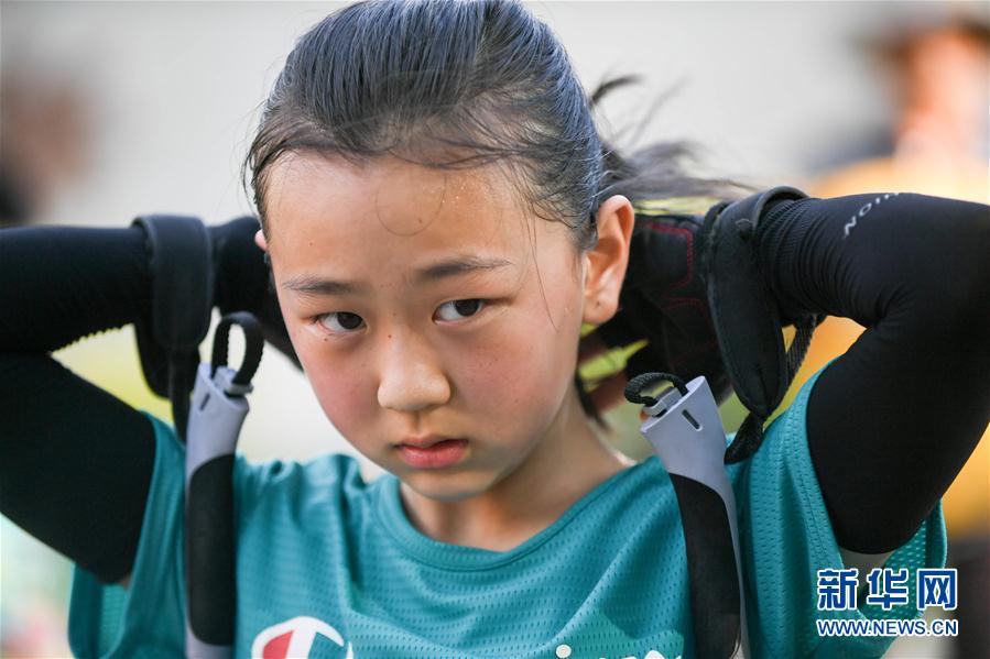 三伏天里,一群穿着滑雪服的孩子,走到一扇金属门前,摁下绿色按钮,门缓缓打开,一座超级大“冰箱”映入眼帘,孩子们鱼贯而入,顺坡滑远……这里就是吉林北山四季越野滑雪场,是亚洲首座具有国际水平的全天候标准化滑雪专业训练场地,它有效缓解了运动员在越野滑雪、冬季两项等运动项目训练的季节性限制,这里不仅是专业运动员的训练基地,也面向社会开放。 这群10至12岁的孩子们,他们来自吉林市多所小学,是吉林市越野滑雪青少年兴趣班成员。在炎热的暑假,他们不仅在室外的坡地上练习越野滑雪滑轮项目,每次还要在零下6摄氏度到零下10摄氏度的环境里练习越野滑雪2个多小时。 与高山滑雪不同,越野滑雪一圈一圈地循环往复,孩子们在滑雪场里训练非常辛苦,虽然经常跌倒,却从不喊累。 “我觉得我们现在特别幸福,夏天也可以滑雪,所以再辛苦也要坚持住。”越野滑雪青少年兴趣班成员明亦诺说。 吉林市越野滑雪青少年兴趣班成员王梓桐在练习越野滑雪滑轮项目时满头大汗(7月27日摄)。 新华社发(颜麟蕴摄)