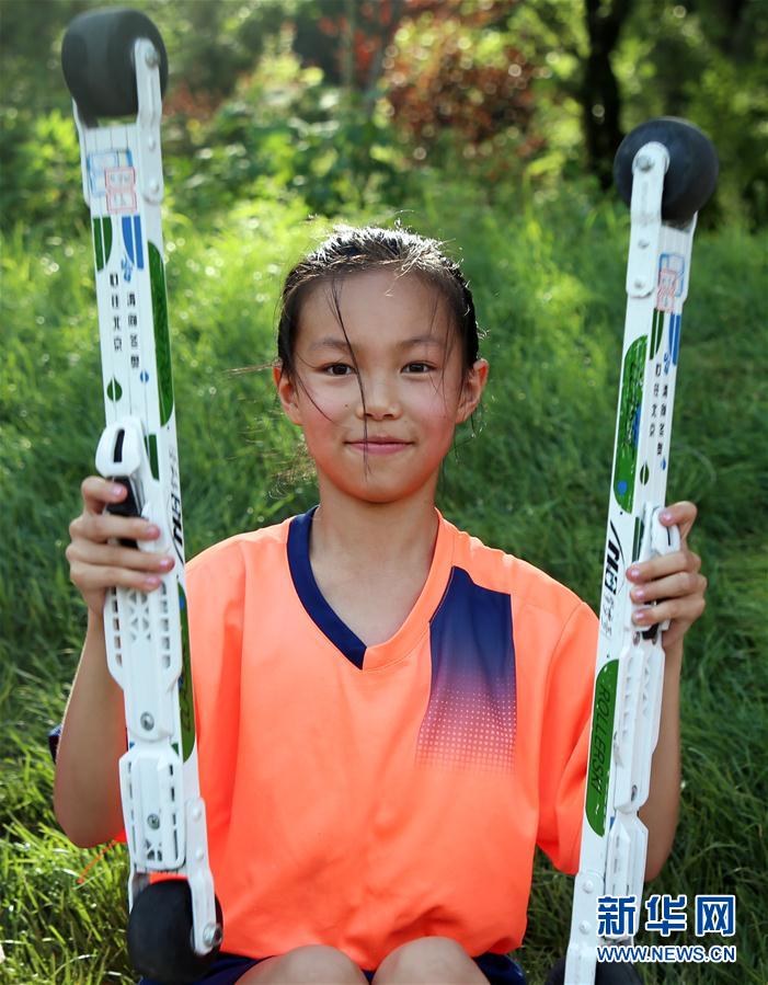 三伏天里,一群穿着滑雪服的孩子,走到一扇金属门前,摁下绿色按钮,门缓缓打开,一座超级大“冰箱”映入眼帘,孩子们鱼贯而入,顺坡滑远……这里就是吉林北山四季越野滑雪场,是亚洲首座具有国际水平的全天候标准化滑雪专业训练场地,它有效缓解了运动员在越野滑雪、冬季两项等运动项目训练的季节性限制,这里不仅是专业运动员的训练基地,也面向社会开放。 这群10至12岁的孩子们,他们来自吉林市多所小学,是吉林市越野滑雪青少年兴趣班成员。在炎热的暑假,他们不仅在室外的坡地上练习越野滑雪滑轮项目,每次还要在零下6摄氏度到零下10摄氏度的环境里练习越野滑雪2个多小时。 与高山滑雪不同,越野滑雪一圈一圈地循环往复,孩子们在滑雪场里训练非常辛苦,虽然经常跌倒,却从不喊累。 “我觉得我们现在特别幸福,夏天也可以滑雪,所以再辛苦也要坚持住。”越野滑雪青少年兴趣班成员明亦诺说。 吉林市越野滑雪青少年兴趣班成员马嘉展示越野滑雪滑轮项目装备(7月27日摄)。 新华社记者 雒圆 摄
