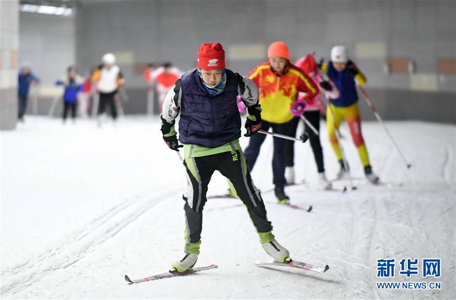 三伏天里,一群穿着滑雪服的孩子,走到一扇金属门前,摁下绿色按钮,门缓缓打开,一座超级大“冰箱”映入眼帘,孩子们鱼贯而入,顺坡滑远……这里就是吉林北山四季越野滑雪场,是亚洲首座具有国际水平的全天候标准化滑雪专业训练场地,它有效缓解了运动员在越野滑雪、冬季两项等运动项目训练的季节性限制,这里不仅是专业运动员的训练基地,也面向社会开放。 这群10至12岁的孩子们,他们来自吉林市多所小学,是吉林市越野滑雪青少年兴趣班成员。在炎热的暑假,他们不仅在室外的坡地上练习越野滑雪滑轮项目,每次还要在零下6摄氏度到零下10摄氏度的环境里练习越野滑雪2个多小时。 与高山滑雪不同,越野滑雪一圈一圈地循环往复,孩子们在滑雪场里训练非常辛苦,虽然经常跌倒,却从不喊累。 “我觉得我们现在特别幸福,夏天也可以滑雪,所以再辛苦也要坚持住。”越野滑雪青少年兴趣班成员明亦诺说。 吉林市越野滑雪青少年兴趣班成员在吉林北山四季越野滑雪场里练习越野滑雪(7月27日摄)。 新华社发(颜麟蕴摄)