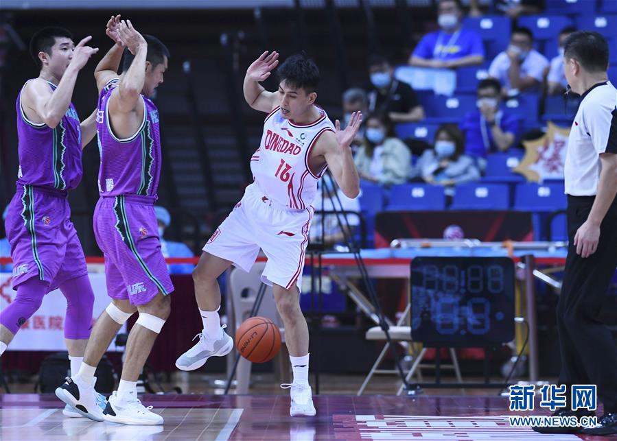 7月31日,青岛国信双星队球员林韦翰(左三)在比赛中示意。 当日,在山东青岛举行的2019-2020赛季中国男子篮球职业联赛(CBA)季后赛首轮比赛中,青岛国信双星队以129比120战胜山东西王队,晋级八强。 新华社记者朱峥摄