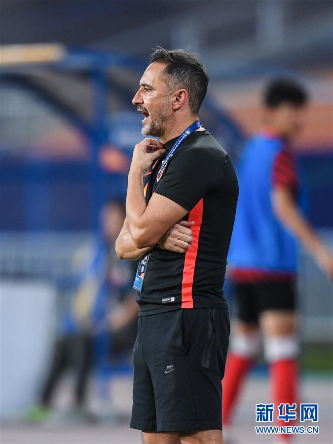8月2日,上海上港队主教练佩雷拉在场边观战。 当日,在2020赛季中国足球协会超级联赛第一阶段(苏州赛区)第二轮比赛中,上海上港队以4比0战胜河北华夏幸福队。 新华社记者 李博 摄