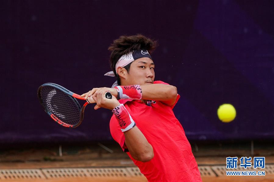 8月3日,张之臻在比赛中回球。 当日,在2020中国网球巡回赛安宁站男单正选赛第一轮比赛中,张之臻以2比1战胜李翰文。 新华社记者胡超摄