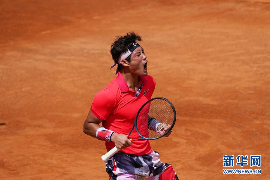 8月3日,张之臻在赛后庆祝。 当日,在2020中国网球巡回赛安宁站男单正选赛第一轮比赛中,张之臻以2比1战胜李翰文。 新华社记者胡超摄