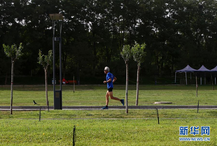 在宁夏银川森林公园,顾大我在进行跑步训练(7月28日摄)。 新华社记者 贾浩成 摄