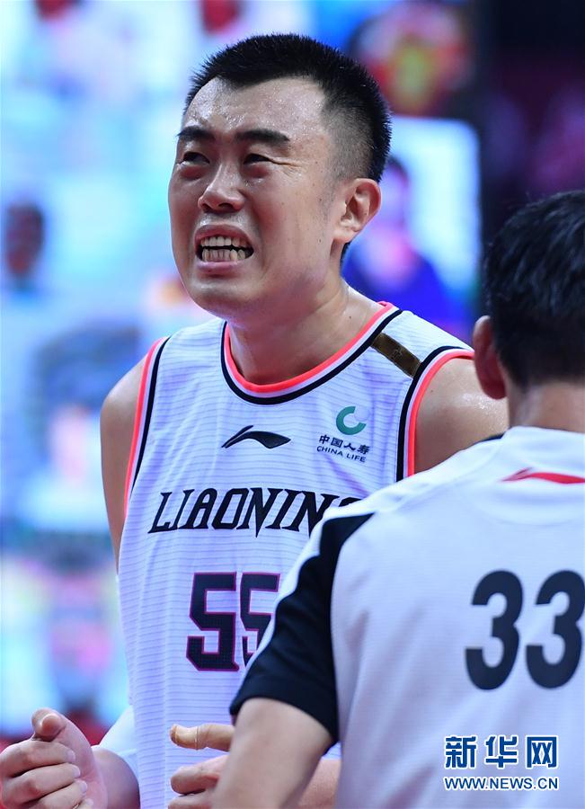8月3日,辽宁本钢队球员韩德君在比赛中。 当日,在山东青岛举行的2019-2020赛季中国男子篮球职业联赛(CBA)季后赛四分之一决赛中,辽宁本钢队以127比123战胜浙江稠州银行队,晋级四强。 新华社记者朱峥摄