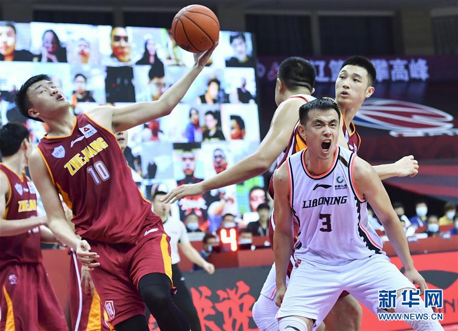 8月3日,辽宁本钢队球员赵继伟(右)在比赛中庆祝进球。 当日,在山东青岛举行的2019-2020赛季中国男子篮球职业联赛(CBA)季后赛四分之一决赛中,辽宁本钢队以127比123战胜浙江稠州银行队,晋级四强。 新华社记者 朱峥 摄