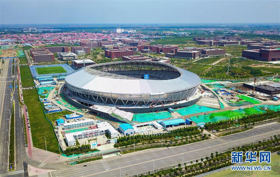 8月4日拍摄的邯郸市体育中心建设现场(无人机拍摄)。 目前,河北省邯郸市继续推进河北省第16届运动会场馆建设,生产防疫两不误。河北省邯郸市体育中心位于邯郸市东部新区,建成后将成为2022年河北省第16届运动会开闭幕式主会场。 新华社记者 王晓 摄