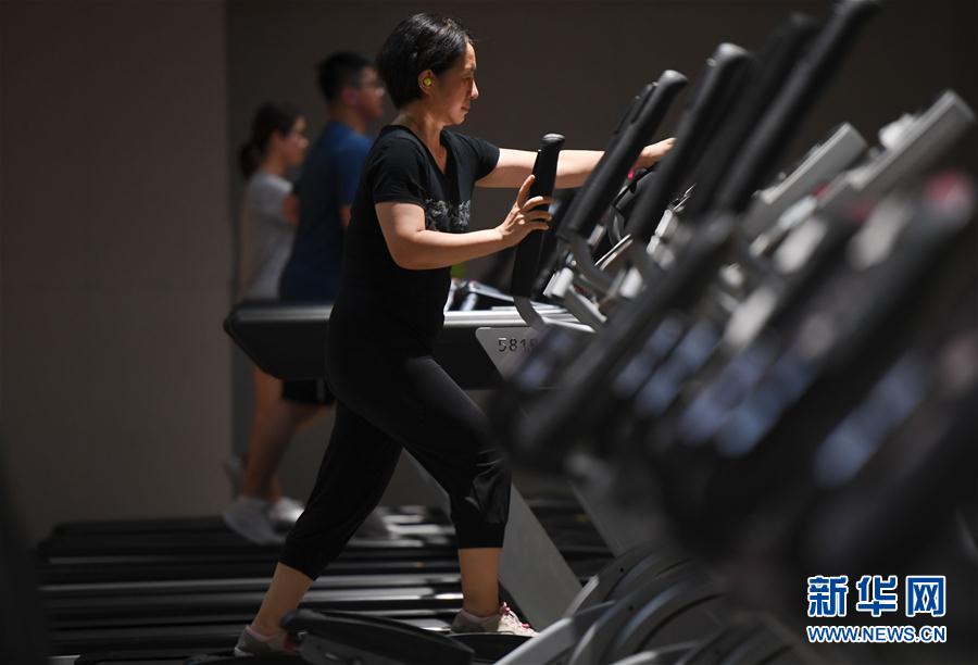 8月4日,市民在福建省福州市一家健身俱乐部锻炼。 眼下正值夏季,室内健身成了越来越多市民的选择,福建省福州市的健身房陆续复产复工,健身消费逐渐回暖。 新华社记者 宋为伟 摄