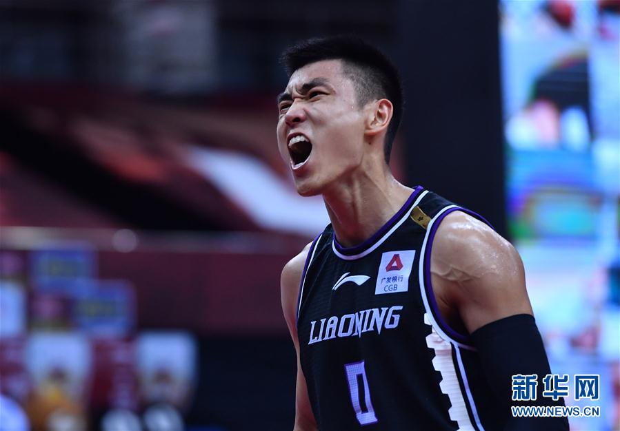 8月5日,辽宁本钢队球员高诗岩在比赛中呐喊。 当日,在山东青岛举行的2019-2020赛季中国男子篮球职业联赛(CBA)季后赛半决赛首轮比赛中,辽宁本钢队以116比88战胜新疆伊力特队。 新华社记者 朱峥 摄