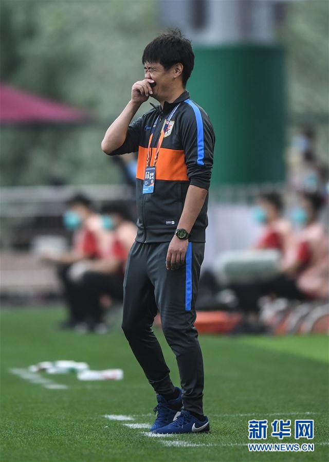 8月5日,山东鲁能泰山队主教练李霄鹏在场边观战。 当日,在2020中国足球协会超级联赛(大连赛区)第三轮比赛中,上海绿地申花队以1比0战胜山东鲁能泰山队。 新华社记者 潘昱龙 摄