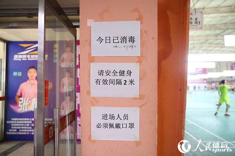 防疫提示在球馆随处可见(人民网 赵欣悦摄)