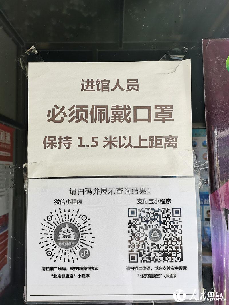 防疫提示:进馆人员必须佩带口罩,保持一定距离(人民网 赵欣悦摄)