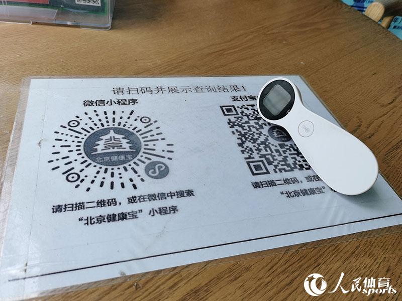 健康宝二维码和体温计是每个球馆的必备工具(人民网 赵欣悦摄)