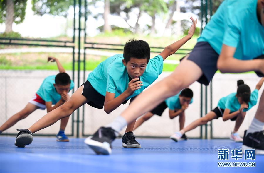 在长春冬运中心的室外训练场上,短道速滑业余重点班成员丛一鸣正在进行动作模仿训练(8月4日摄)。 炎炎夏日,十几个“冰娃娃”在长春市冬季运动管理中心(简称长春冬运中心)滑冰馆的冰面上“飞驰”。他们是长春冬运中心短道速滑业余重点班成员,最大的12岁,最小的只有5岁。 冬练三九,夏练三伏。今年7月初,这群“冰娃娃”们告别自己的父母,背上行囊,从内蒙古、辽宁、吉林等地来到长春集中训练。 上午在宿舍里学习,下午进行体能训练、动作模仿等陆地训练,晚上到冰上“撒欢”,这群“冰娃娃”们每天都这样过暑假。 年龄最小的高晨曦说:“我很喜欢短道速滑,每天在这里训练都很开心,就算摔倒了我也不哭。以后我想像专业队的哥哥姐姐们一样参加比赛,成为冠军!” 新华社发(颜麟蕴摄)