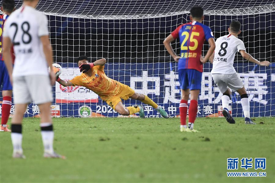 8月6日,上海上港队球员奥斯卡(右)在比赛中射入点球。 当日,在2020赛季中国足球协会超级联赛第一阶段(苏州赛区)第三轮比赛中,青岛黄海青港队以1比1战平上海上港队。 新华社记者 韩瑜庆 摄