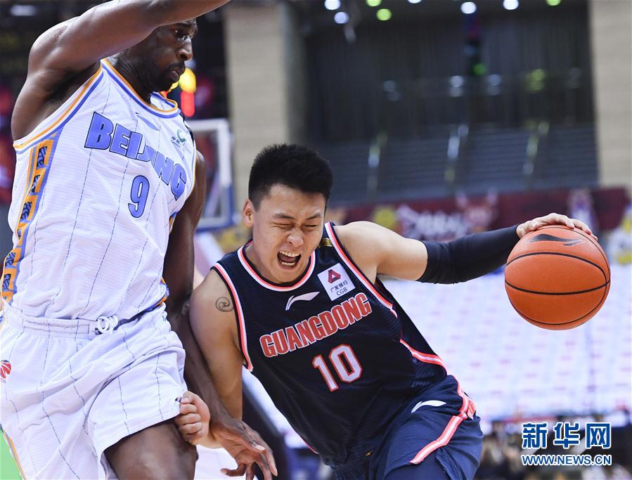 8月6日,广东东莞银行队球员赵睿(右)在比赛中突破。 当日,在山东青岛举行的2019-2020赛季中国男子篮球职业联赛(CBA)季后赛半决赛第二轮比赛中,广东东莞银行队以86比90不敌北京首钢队,总比分战成1比1平。 新华社记者朱峥摄