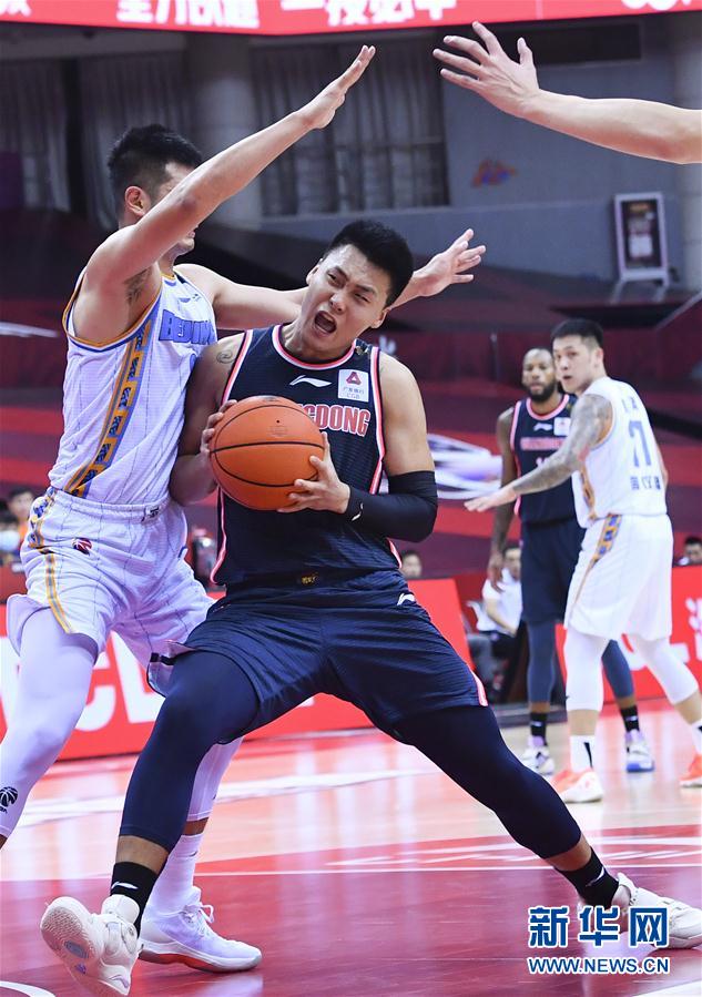 8月6日,广东东莞银行队球员赵睿(前右)在比赛中突破。 当日,在山东青岛举行的2019-2020赛季中国男子篮球职业联赛(CBA)季后赛半决赛第二轮比赛中,广东东莞银行队以86比90不敌北京首钢队,总比分战成1比1平。 新华社记者朱峥摄