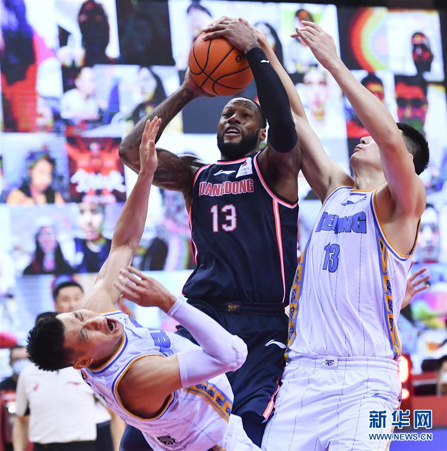 8月6日,广东东莞银行队球员威姆斯(中)在比赛中投篮受阻。 当日,在山东青岛举行的2019-2020赛季中国男子篮球职业联赛(CBA)季后赛半决赛第二轮比赛中,广东东莞银行队以86比90不敌北京首钢队,总比分战成1比1平。 新华社记者朱峥摄
