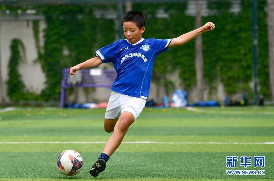 8月6日,U10精英队球员汪玉涵在训练中。 当日,在天津市河东区富民体育公园足球场,来自于根伟青少年足球俱乐部U10精英队的10余名小球员参加暑期足球训练,在绿茵场上快乐驰骋,享受足球运动带来的乐趣。 新华社发 (孙凡越 摄)