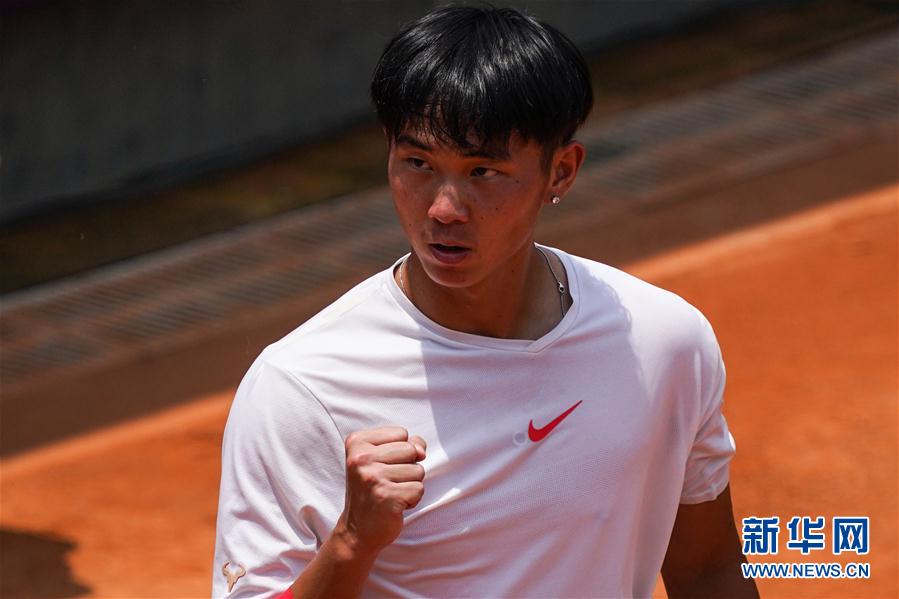 8月6日,莫业聪在比赛中庆祝。 当日,在2020中国网球巡回赛安宁站男单四分之一决赛中,张之臻以1比2不敌莫业聪,无缘四强。 新华社记者胡超摄