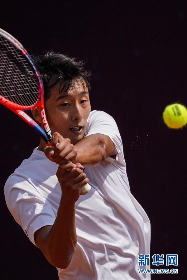 8月6日,王楚涵在比赛中回球。 当日,在2020中国网球巡回赛安宁站男单四分之一决赛中,王楚涵以2比1战胜张择,晋级四强。 新华社记者 胡超 摄