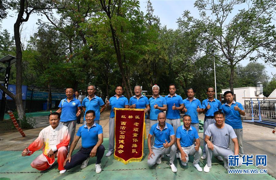 上杠、翻转、倒立.......在天津市红桥区西沽公园内的健身园,一群平均年龄68岁的老人正在练习各种体操和杂技动作,引得围观群众发出连连赞叹。 这支远近闻名的“老顽童”体操队现有固定成员20多人,年龄最大的81岁,最小的53岁。体操队成立10年来,他们坚持每天锻炼、每周表演。 队长佟玉根说:“我们不服老也不怕老,小时候都是‘孩子王’,老了也要强。健身锻炼让我们各个又强又壮,身体健康才能生活有质量。” 近年来,随着“老顽童”体操队的知名度不断提升,队伍也逐渐壮大。除了固定成员外,还有百余位健身爱好者经常一起参加锻炼。“老顽童”体操队的目标就是带动更多人参与到全民健身中来。 “老顽童”体操队部分队员在天津市红桥区西沽公园内合影(8月1日摄)。 新华社记者 李然 摄