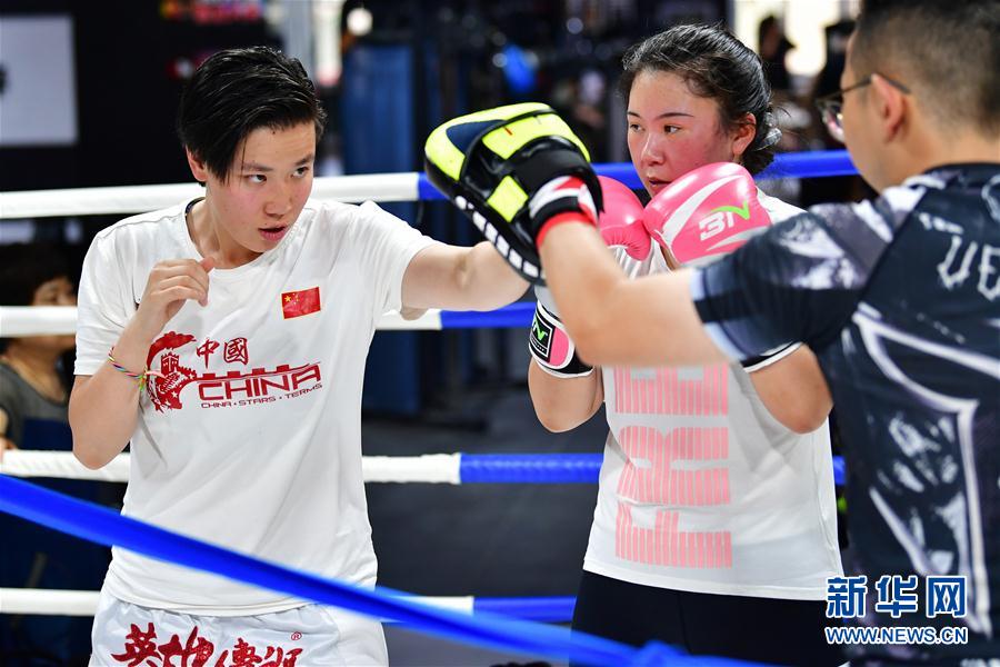 在甘肃省兰州市一家健身房内,薛金玉(左)指导学员进行搏击训练(8月4日摄)。 两手护头,目视前方,快速出拳,绷紧的小腿在空中扫过一道弧线……搏击教练薛金玉在拳台上的动作要领示范,不时引来阵阵掌声。 今年24岁的薛金玉是甘肃兰州一家健身房的搏击教练。一次偶然的机会接触搏击运动后,她便彻底喜爱上了它,一练就是六年多。 2018年大学会计专业毕业后,薛金玉选择成为一名搏击运动员和教练。训练和比赛之外,薛金玉专心给学员进行搏击、跆拳道、散打等项目的指导,被大伙亲切地称为“搏击玫瑰”。 搏击运动因为比赛场面激烈,经常被贴上“暴力”的标签。“很多人认为女孩子就应该文文静静,但其实搏击是体力、智力、心理的综合较量。练习搏击不仅能自卫、防身,而且会使你内心更强大。我一直有个愿望,就是让更多女性接触和了解搏击。”薛金玉说。 在薛金玉的带动下,搏击成为她所在的健身房最受欢迎的运动之一。越来越多的年轻人走上拳台,享受搏击运动带来的快乐。 新华社记者陈斌摄