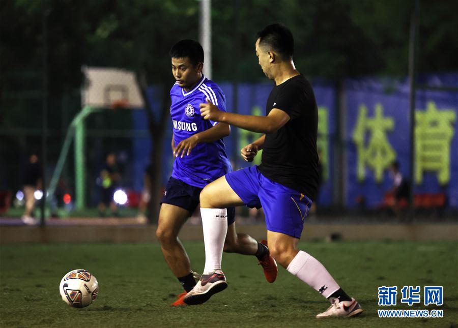 市民在宁夏银川市光明广场足球场内踢足球(8月5日摄)。 每当夜幕降临,宁夏银川市各大室外健身活动场所纷纷亮起灯光,如同繁星一般点亮整座城市,为市民提供充足的运动场地和多样的健身设施,让“健身族”在夜晚也可以挥洒汗水,享受运动之乐。据统计,银川市目前全市经常参加体育锻炼的群众达到99.33万人,公共体育场地设施(含学校)1600余个,人均体育场地面积2.88平方米。 新华社记者 贾浩成 摄