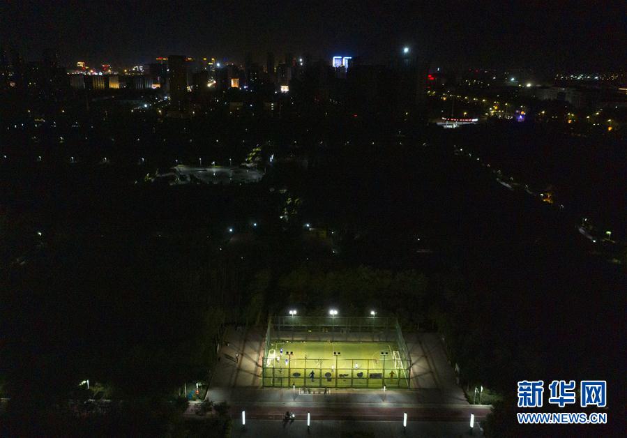 市民在宁夏银川市毓秀公园足球场内踢足球(无人机照片,7月29日摄)。 每当夜幕降临,宁夏银川市各大室外健身活动场所纷纷亮起灯光,如同繁星一般点亮整座城市,为市民提供充足的运动场地和多样的健身设施,让“健身族”在夜晚也可以挥洒汗水,享受运动之乐。据统计,银川市目前全市经常参加体育锻炼的群众达到99.33万人,公共体育场地设施(含学校)1600余个,人均体育场地面积2.88平方米。 新华社记者 冯开华 摄