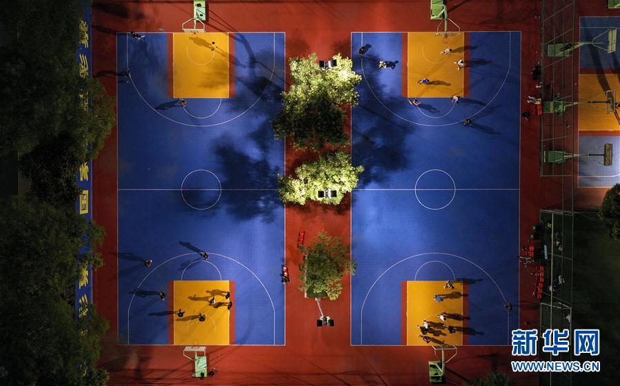 市民在宁夏银川市光明广场篮球场内打篮球(无人机照片,7月26日摄)。 每当夜幕降临,宁夏银川市各大室外健身活动场所纷纷亮起灯光,如同繁星一般点亮整座城市,为市民提供充足的运动场地和多样的健身设施,让“健身族”在夜晚也可以挥洒汗水,享受运动之乐。据统计,银川市目前全市经常参加体育锻炼的群众达到99.33万人,公共体育场地设施(含学校)1600余个,人均体育场地面积2.88平方米。 新华社记者 王鹏 摄