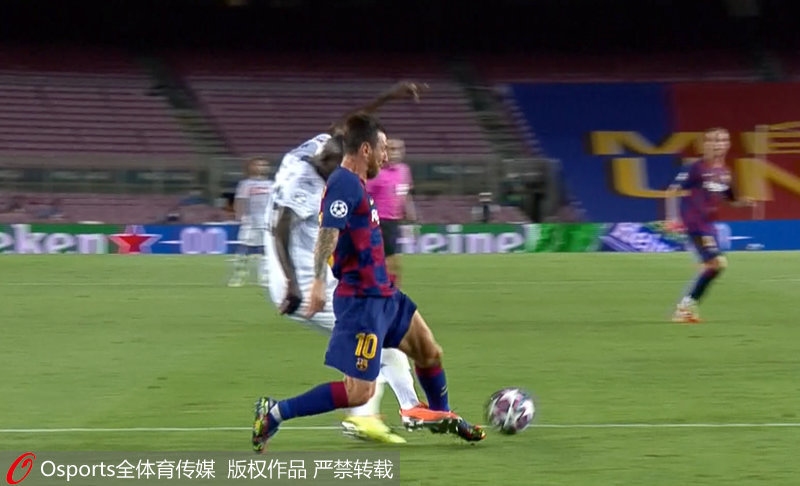 第23分钟,梅西在右边路接球后连续突破两人后倒地,但起身过掉马诺拉斯后搓射远角破门。巴塞罗那2-0那不勒斯!