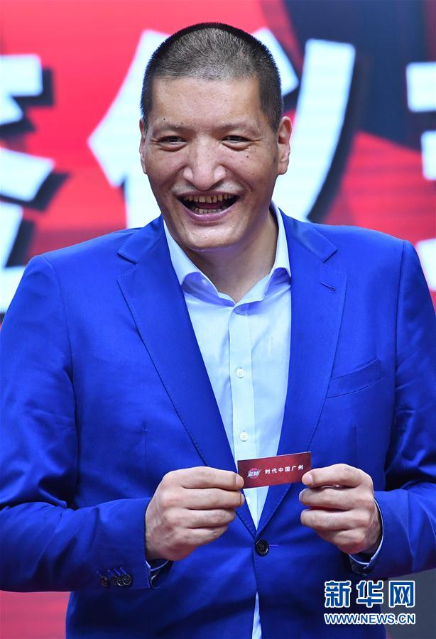 8月10日,抽签嘉宾巴特尔在抽签仪式上展示印有“时代中国广州”字样的签条。 当日,2020年CBA选秀乐透抽签仪式在山东青岛举行。上海久事队获得第一顺位选秀权,时代中国广州队和天津先行者队分别获得第二和第三顺位。 新华社记者朱峥摄