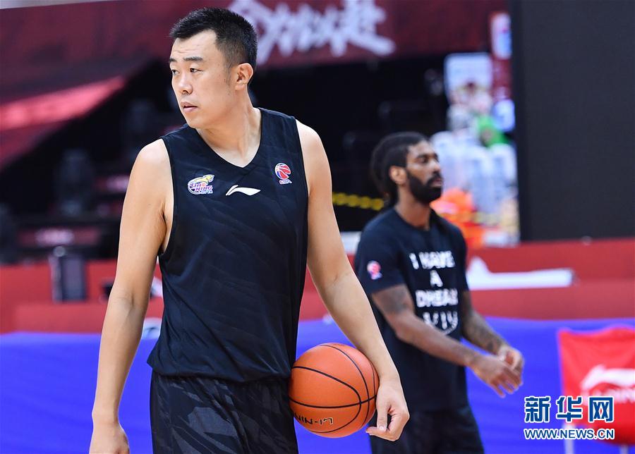 8月11日,辽宁本钢队球员韩德君在训练中。 当日,辽宁本钢队进行训练,备战在山东青岛举行的2019-2020赛季中国男子篮球职业联赛(CBA)总决赛首场比赛。 新华社记者 朱峥 摄