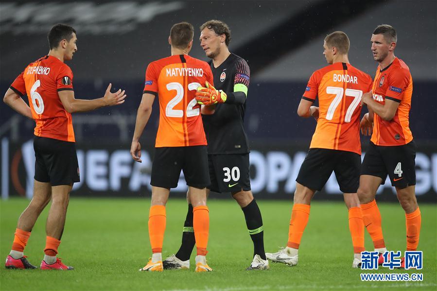 8月11日,顿涅茨克矿工队球员在获胜后庆祝。 当日,在德国盖尔森基兴进行的2019-2020赛季欧罗巴联赛四分之一决赛中,乌超顿涅茨克矿工队以4比1战胜瑞超巴塞尔队,晋级半决赛。 新华社发(欧足联供图)
