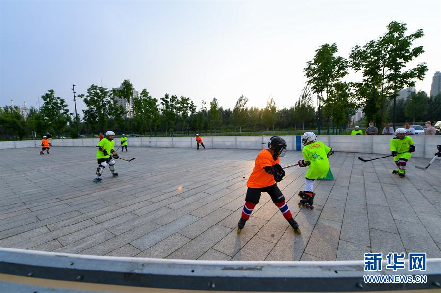 8月11日,孩子们在进行陆地冰球训练。 在吉林省吉林市体育馆,一群身着冰球“铠甲”、穿着轮滑鞋的孩子们在激烈拼抢,这是吉林市毓龙青少年冰球俱乐部的孩子们在进行陆地冰球训练。在这群孩子里,一对兄弟显得格外亮眼。 哥哥叫文潇锐,上小学三年级,从2018年开始在毓龙青少年冰球俱乐部练习冰球。当时,弟弟文潇峰还是哥哥的“陪练”,每天看着哥哥训练,也对冰球产生浓厚的兴趣。2019年3月,文潇峰也加入了俱乐部。他们一起坚持训练,相互鼓励,逐渐成为冰球队里一道风景线。 今年受疫情影响,俱乐部从6月末才开始逐渐恢复训练。虽然改为陆地冰球训练,但兄弟俩的积极性没有削减。“都半年没打冰球了,现在能恢复训练,我真的太开心了!”文潇锐说。 新华社发(颜麟蕴摄)