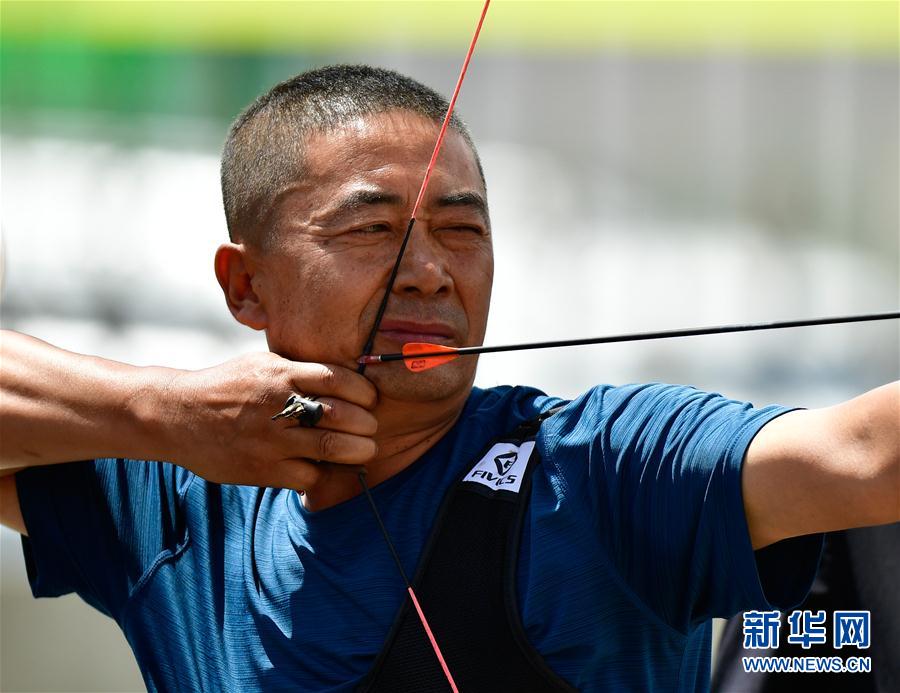 8月12日,一名选手在反曲弓比赛中。 当日,2020年青海尖扎“五彩神箭”射箭赛在黄河沿岸的青海省黄南藏族自治州尖扎县昂拉乡德吉村开赛,此次赛事吸引了来自青海省各市州的900余名农牧民参赛,赛事为期五天,比赛分为传统角弓、反曲弓和复合弓三项,以团体赛的形式进行。 新华社记者 张龙 摄