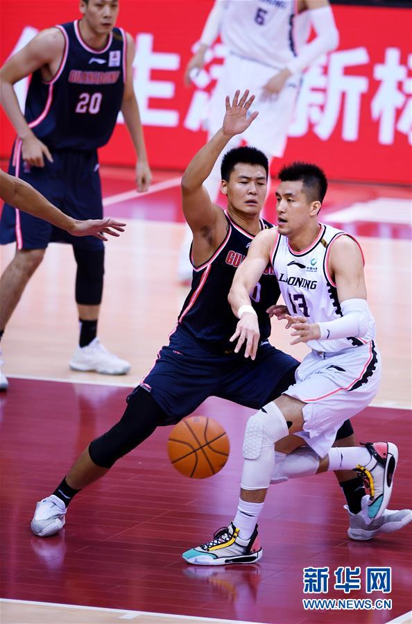 8月13日,辽宁本钢队球员郭艾伦(右)在比赛中传球。 当日,在山东青岛举行的2019-2020赛季中国男子篮球职业联赛(CBA)总决赛第二场比赛中,辽宁本钢队迎战广东东莞银行队。 新华社记者 李紫恒 摄