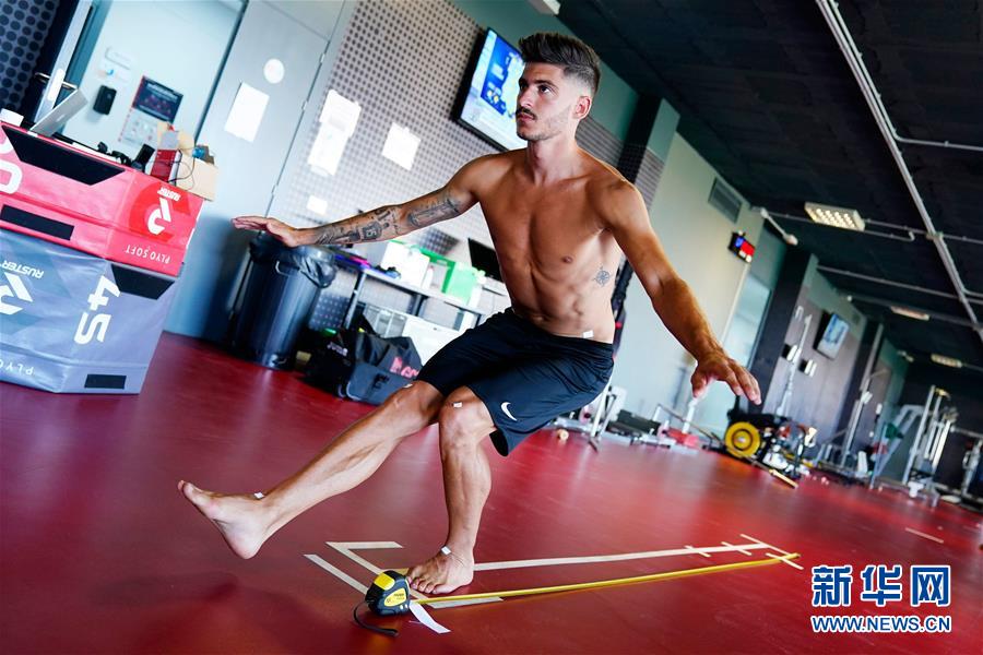 8月12日,格拉纳达队球员卡洛斯·内瓦正在进行平衡性检测。 当日,西甲球队格拉纳达队的球员在西班牙格拉纳达进行新赛季前的体检。在2019-2020赛季西班牙足球甲级联赛中,格拉纳达队列积分榜第七,取得下赛季欧罗巴联赛的一张入场券。 新华社发(格拉纳达队供图)