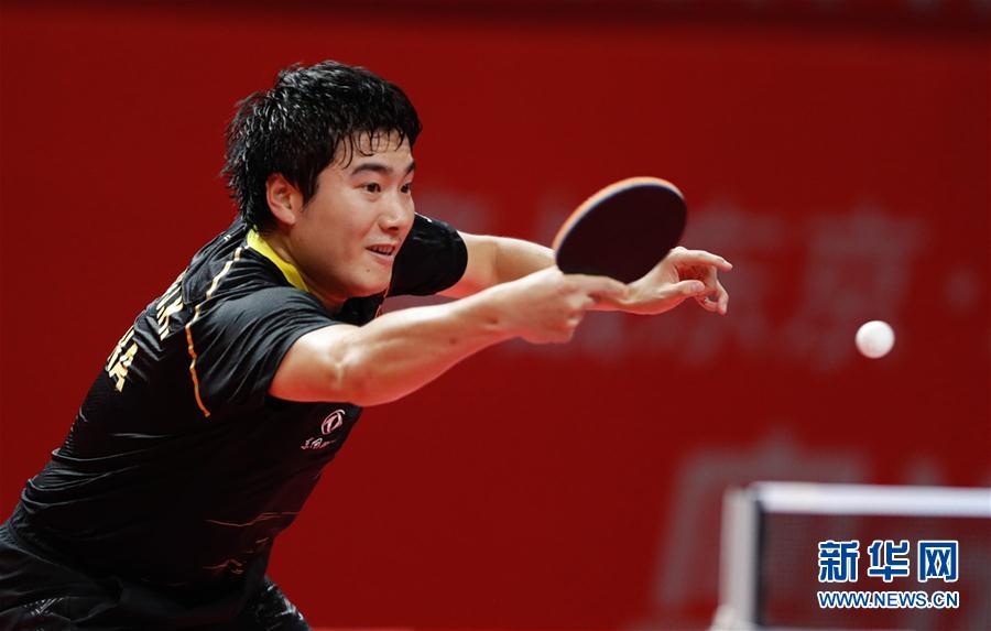8月14日,梁靖崑在比赛中回球。 当日,在海南陵水举行的中国乒乓球队奥运模拟赛男子单打决赛中,梁靖崑以4比2战胜王楚钦,夺得冠军。 新华社发(边玉翔 摄)