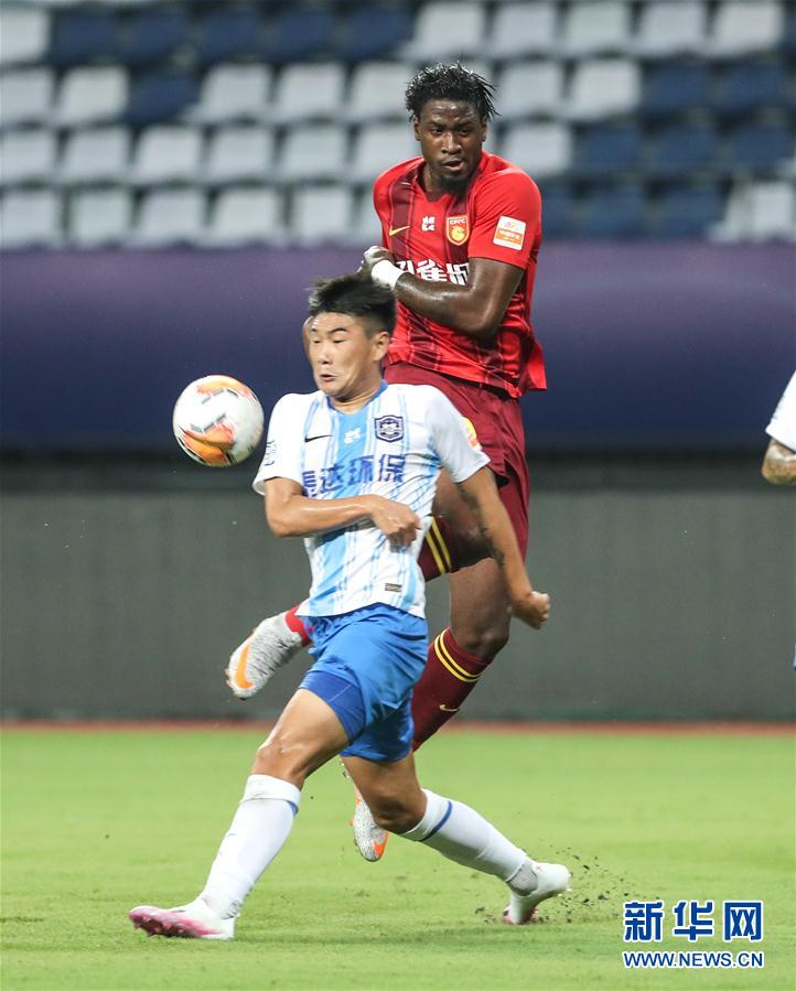 8月17日,河北华夏幸福队球员马尔考(后)在比赛中进攻。 当日,在2020赛季中国足球协会超级联赛第一阶段(苏州赛区)第五轮比赛中,河北华夏幸福队对阵天津泰达队。 新华社记者杨磊摄