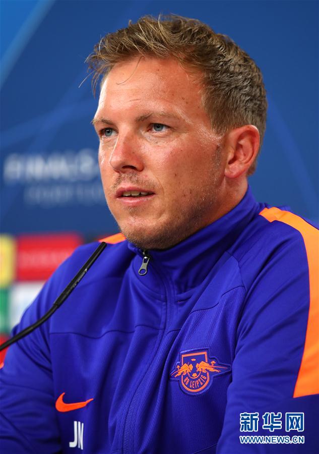 8月17日,莱比锡队主教练纳格尔斯曼在新闻发布会上。 当日,德甲莱比锡队在葡萄牙里斯本举行新闻发布会与赛前训练,备战次日对阵法甲巴黎圣日耳曼队的2019-2020赛季欧冠联赛半决赛。 新华社发(欧足联供图)