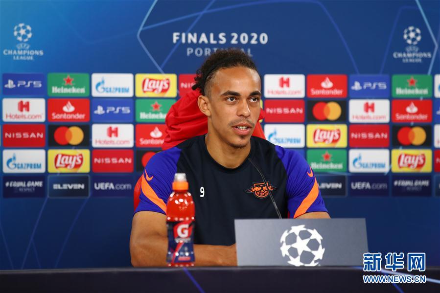 8月17日,莱比锡队球员波尔森在新闻发布会上。 当日,德甲莱比锡队在葡萄牙里斯本举行新闻发布会与赛前训练,备战次日对阵法甲巴黎圣日耳曼队的2019-2020赛季欧冠联赛半决赛。 新华社发(欧足联供图)