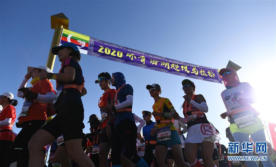 8月18日,参赛选手从单日赛全程马拉松起点出发。 当日,为期五天的环青海湖超级马拉松在青海湖151景区开赛,来自国内外近200名跑步爱好者在青海湖畔体验高海拔马拉松的乐趣。据了解,2020环青海湖超级马拉松共分为单日赛5公里、单日赛全程马拉松、超级马拉松5日赛、超级马拉松5日赛团队赛四个组别。 新华社记者 张宏祥 摄
