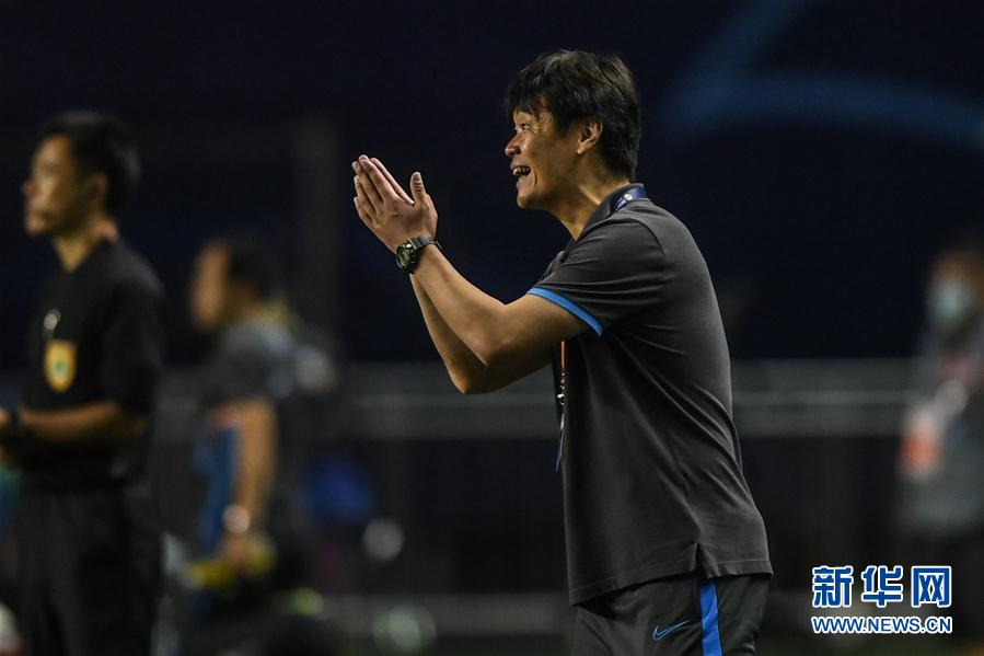 8月19日,山东鲁能泰山队主教练李霄鹏在场边指挥。 当日,在2020中国平安中国足球协会超级联赛(大连赛区)第六轮比赛中,山东鲁能泰山队以2比1战胜河南建业队。 新华社记者潘昱龙摄