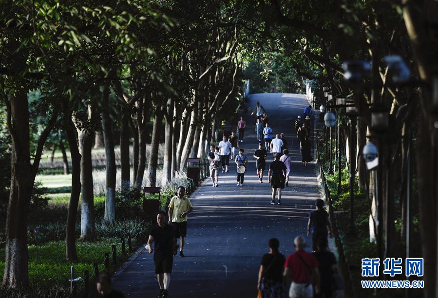 8月20日,健身爱好者在西湖景区苏堤上锻炼。 清晨,人们纷纷来到杭州西湖边锻炼身体。晨练的人群为宁静的西湖带来一天中的第一缕律动。 新华社记者黄宗治摄